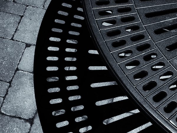 Monochrome view of shadows cast onto bricks by tabletop.